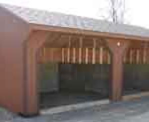 This building is the perfect way to protect your animals from the weather. The walls are build with 2 x 4 framing on 16" centers and has a 4 ft. high interior wall of 3/4" treated plywood. The roof is ½" exterior plywood covered with 30 yr. architectural shingles. The Run In is available in sizes ranging from 10 x 10 to 12 x 36